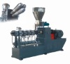 Dense Melting Three-Srew Extruders Functional Analysis. The Dense Melting Three-Screw Extruder is a new kind of three-screw extruder, and also is the 21st century new extruding machines, its being published has filled the world blank, will certainly to initiate a technological revolution of the extruding machine profession, and will become the main army of the next plastic production equipment. At present, this machine is type 60, the screw diameter 60 millimeters, the center distance 54 millimeters, the L/D= 30:1, the screw rotational speed 500rpm, main power 55-75KW, uses the frequency conversion velocity or the direct-current velocity, complete a special water-ring hot-face installment. Under two years tests in kinds of condition, the machine is running steadily, safely, and reliable.1High cutting efficiency, good plastified efficiency One pair of screws have a meshing point, but three screws have three meshing points. Namely is equal to three pairs of twin-screw, therefore the cutting efficiency is high, the material is easy to plastify. When the experimental pigment contains 15% blue color grain, extracts the screw to examine, seeing the material is already plastified in middle of the screw, this explained its plastified effect was good.2Good dense melting function and disperser effect The three screws densely arrange together, and form a closed space in the central area. The screw rotates a ring every time, passes in the identical section this center space after the area changes from 7.5 millimeters to 321 millimeters, changes three times namely works as when the compression ratio is 43 time of screw rotational speeds is 500 rpm, changes 3X30X500=45000 time, if the material pauses 20 seconds in the screw, then the material in the screw will receive 15000 force backlogs and rubs, thus is evenly plastified and dispersed. Therefore this machine is the collection of dense melting and extruding. The practice proved when producing carbon black masterbatch material, the carbon black content may reach 55%, producing low smoke non-halogen flame-resistant cables, the magnesium hydroxide content may reach 90%, producing the PP or the PE masterbatch, the calcium carbonate content may reach 85% or above, and the effect is very good.3High output, low energy consumption Its output is double than the twin-screw extruder with the same size and power. To produce the same quantity products, it reduces the costs of manpower, location and so on. Because its small length to diameter ratio, main motor power and heater power reduced, it conserves energy.4Good exhausting performance This machines air vent is without any material accumulated, no spouting of material and jamming phenomena, its reason is the material nearly all densely is inhaled in the screw center area, the dense melting area is like a melt pump, so there is no spouting of material. So this machine can achieve the very high vacuum degre and improve the product quality.5The material resident in the cylinder shortly, hard to degrade This machines length to diameter ratio is short (the present is 22, can be shorter according to certain materials), 22 lengths to diameter ratio are equal to the twin-screw 66 length to diameter ratio, the materials resident time in the cylinder may reduce 1/3, therefore, this machine suits in the heat-sensitivity and fears to be degraded material. After this machine passes through each material test run, was smoothly through the equipment experimental stage, at present its performance is more superior than any pair of the twin-screw extruder domestic or foreign, specially suited producing upscale products, obtained the expert and professional's strong approval. It already serialized, and put in the market in batch, so it will certainly receive the domestic and foreign users welcome, also was the start of extruding machines epoch-making revolution.